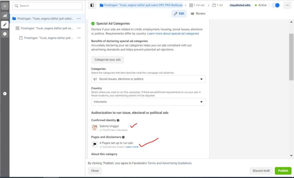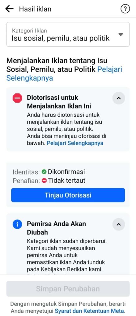 Adalah proses otorisasi iklan di Facebook (FB) dan Instagram (IG)
